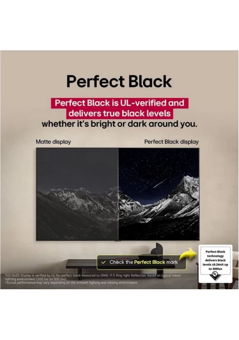 Το Perfect Black έχει πιστοποίηση UL και αποδίδει επίπεδα πραγματικού μαύρου για να ενισχύει την εκλαμβανόμενη φωτεινότητα και αντίθεση, είτε έχετε φως είτε σκοτάδι γύρω σας.