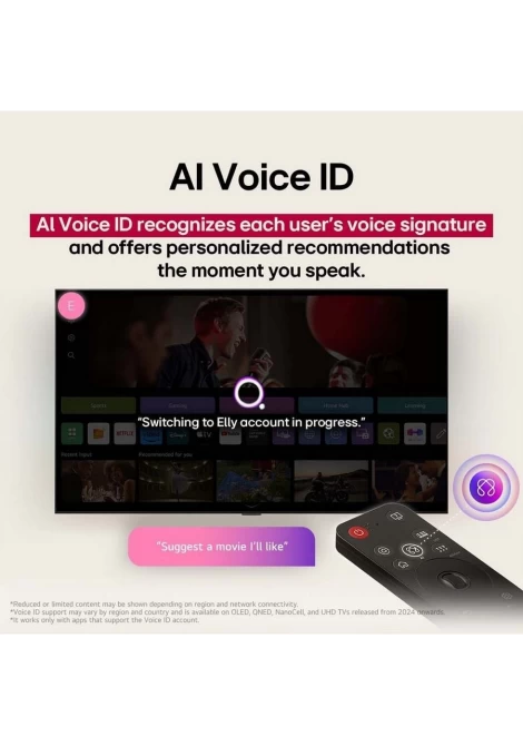 Το LG AI Voice ID αναγνωρίζει τη μοναδική φωνητική υπογραφή κάθε χρήστη και προσφέρει εξατομικευμένες προτάσεις τη στιγμή που μιλάτε.