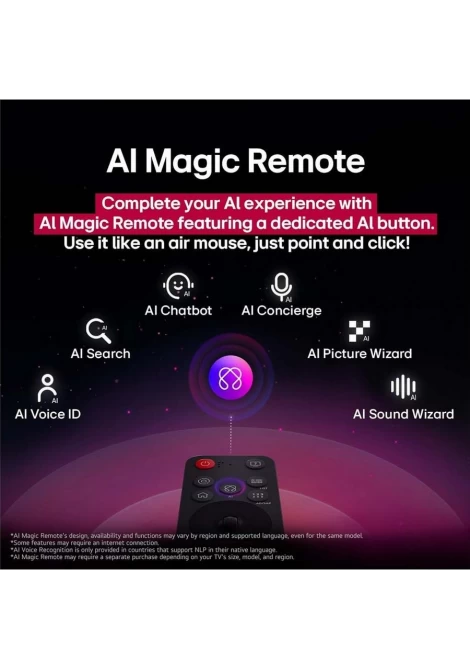 Ελέγχετε την τηλεόρασή σας εύκολα με το AI Magic Remote - δεν απαιτείται επιπλέον συσκευή! Με έναν αισθητήρα κίνησης και τροχό κύλισης, κάντε κλικ, σύρετε και αποθέστε για να το χρησιμοποιήσετε όπως ένα air mouse ή απλώς μιλήστε για φωνητικές εντολές.