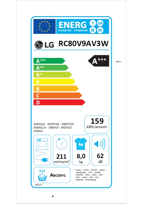 LG RC80V9AV3W Στεγνωτήριο