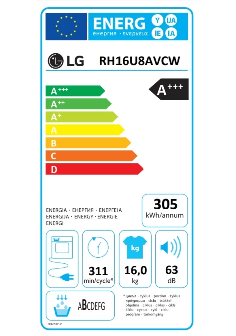 LG RH16U8AVCW Υβριδικό με Aντλία θερμότητας Στεγνωτήριο