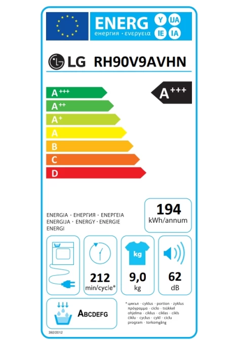 LG RH90V9AVHN Υβριδικό με Aντλία θερμότητας Στεγνωτήριο