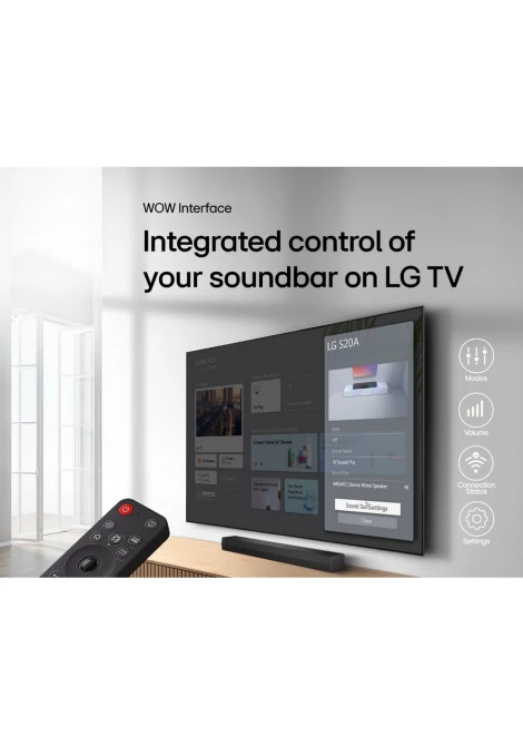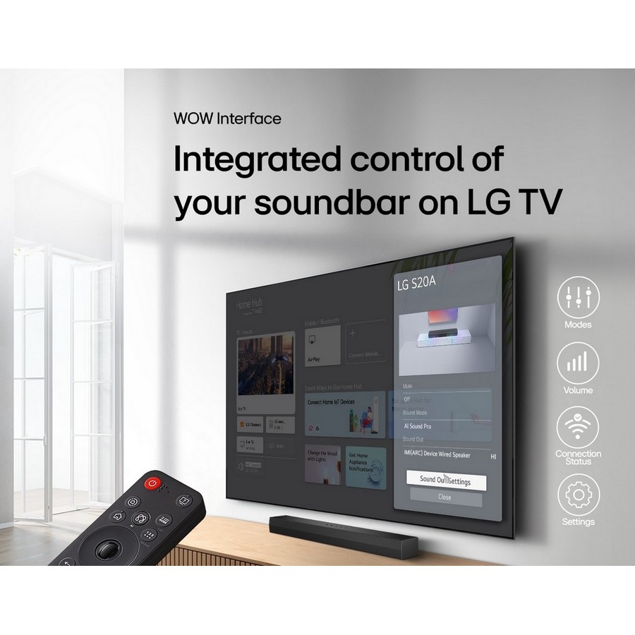 Απαράμιλλη συνεργασία όταν γίνεται σύζευξη με μια LG TV. Ελέγξτε τις λειτουργίες, την ένταση, τη σύνδεση και άλλες ρυθμίσεις του soundbar με το εύχρηστο UI, το LG WOW Interface. Απλά ελέγξτε και ρυθμίστε το soundbar σας στην οθόνη της τηλεόρασης.