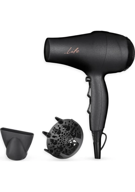 Το σεσουάρ LIFE HD-001 2000W με το κομψό design και το ιδιαίτερο ματ rubber φινίρισμα, αποτελεί ιδανική επιλογή για κάθε χρήστη. Το δυνατό μοτέρ των 2000W, δημιουργεί μία εξαιρετικά ισχυρή ροή αέρα κάνοντας το στέγνωμα και το φορμάρισμα των μαλλιών σας εύκολο και γρήγορο. Τα αποσπώμενα ακροφύσια καλύπτουν κάθε ανάγκη, καθώς περιλαμβάνονται στόμιο για ίσιωμα και φυσούνα για όγκο και μπούκλες. Η ταχύτητα και θερμότητα μπορούν να ρυθμιστούν με ευκολία για να δημιουργήσετε το επιθυμητό αποτέλεσμα. Επιλέξτε ανάμεσα στα 2 επίπεδα ταχύτητας και 3 επίπεδα θερμοκρασίας και χρησιμοποιήστε την λειτουργία cool shot για να σταθεροποιήσετε το styling μόλις ολοκληρώσετε. Τέλος, διαθέτει καλώδιο 1.8m για μέγιστη ευελιξία και είναι ιδιαίτερα ελαφρύ, 350gr, για άνετη και ξεκούραστη χρήση.