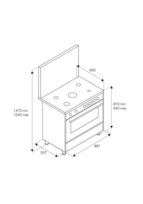 Διαστάσεις (ΠxΥxΒ) 89,7 x 87,0-94,0 x 60,0 εκ.