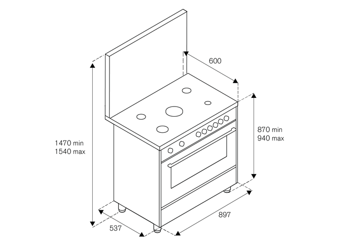 - Διαστάσεις συσκευής (ΠxΥxΒ) 89,7 x 87,0-94,0 x 60,0 εκ.