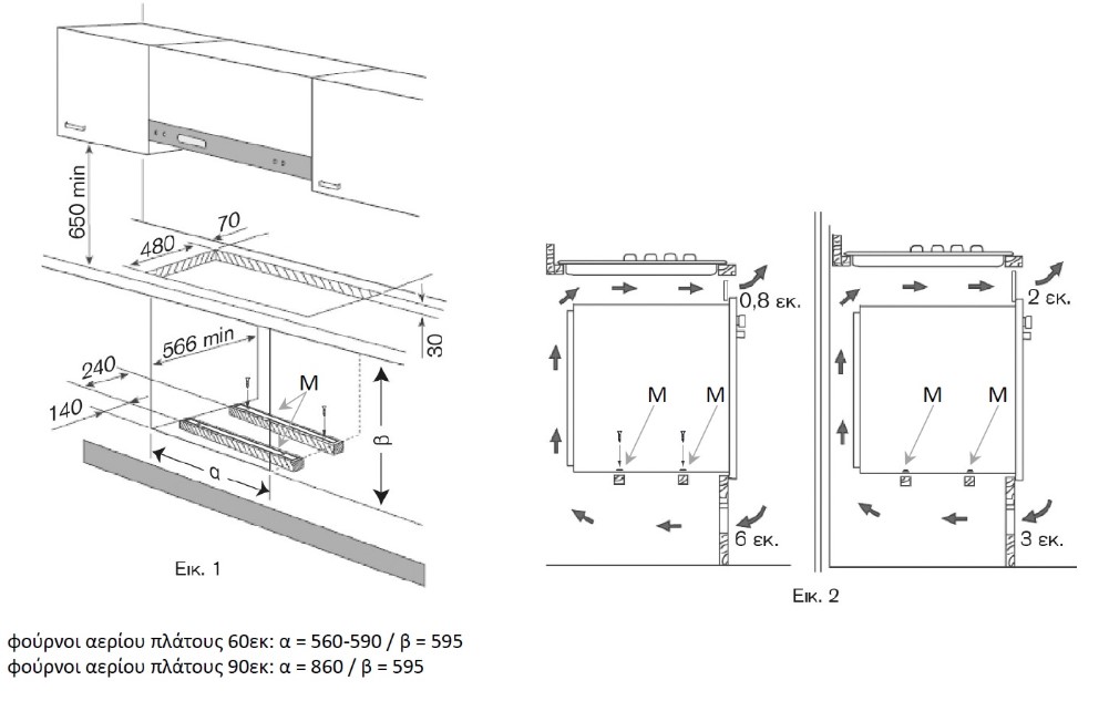 | Διαστάσεις εντοιχισμού (ΠxYxB) | 56,0-57,0 x 58,0-58,5 x 56,0-58,0 εκ. |