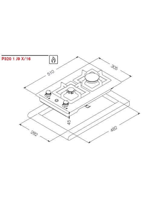 | Διαστάσεις κοπής πάγκου (ΠxΒ) | 282 x 482 χιλ. |