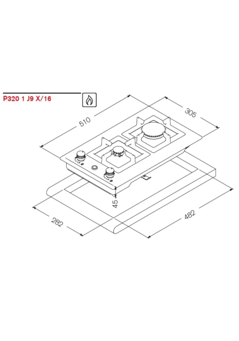 | Διαστάσεις κοπής πάγκου (ΠxΒ) | 282 x 482 χιλ. |