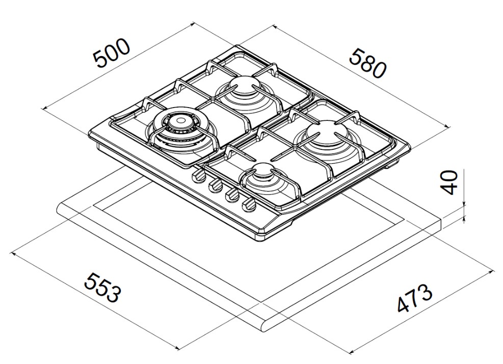 | Διαστάσεις κοπής πάγκου (ΠxΒ) | 553 x 473 χιλ. |