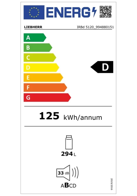 Liebherr IRBd 5120 Plus Εντοιχιζόμενη Μονόπορτη Συντήρηση