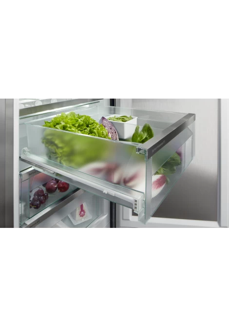 Το συρτάρι BioFresh Professional δίνει στα τρόφιμα μια επιπλέον ενίσχυση φρεσκάδας για μεγάλη διάρκεια ζωής, ενώ η εικόνα του είναι από μόνη του εντυπωσιακή: Χάρη στο HydroBreeze, ένα ψυχρό νέφος καλύπτει τα φρούτα και τα λαχανικά σαν προστατευτικό πέπλο. Σε συνδυασμό με θερμοκρασία λίγο πάνω από τους 0 °C και υψηλή υγρασία, τα μη συσκευασμένα φρούτα και λαχανικά διατηρούνται εκτός συσκευασίας.