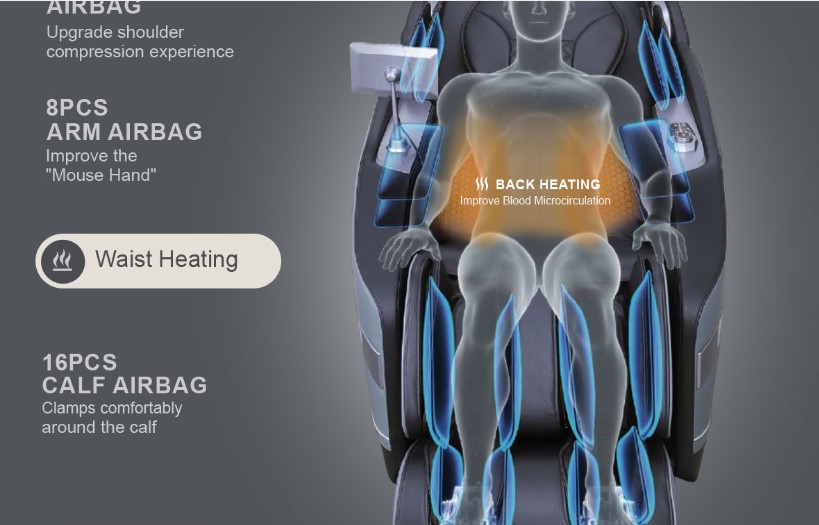 Βασισμένο στην βιο-μηχανική, την εργονομία και το μοντέλο φυσιοθεραπείας, που στοχεύει στα χαρακτηριστικά του ανθρώπινου σκελετού, σε συνδυασμό με μηδενική ισχύ, μηδενικό χώρο, μασάζ με μακρύτερη καμπύλη ράγας και μοντέρνα φυσική έκταση με 28 αερόσακους.