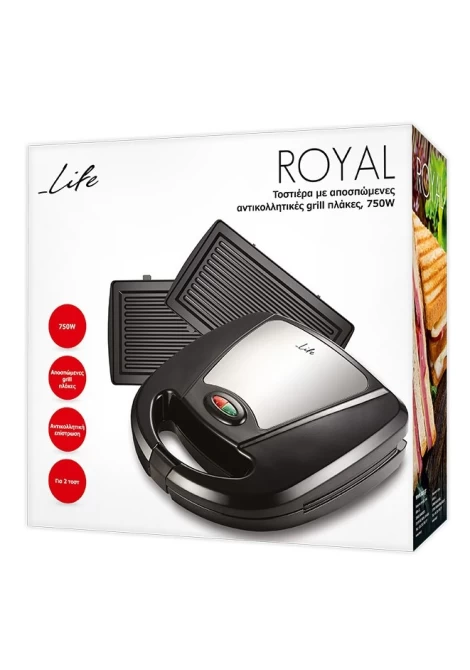 Η τοστιέρα LIFE ROYAL προσθέτει πόντους στην αισθητική της κουζίνα σας, με το σύγχρονο design της, σε μαύρο χρώμα με inox λεπτομέρειες.