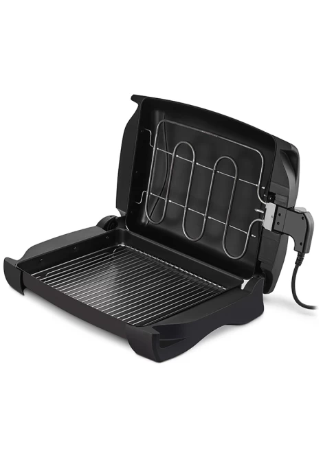 Διαθέτει μεγάλη επιφάνεια ψησίματος 34 x 26 cm, η οποία σας επιτρέπει να ψήσετε μεγάλη ποσότητα κρεάτων και λαχανικών ταυτόχρονα, ρυθμιζόμενο θερμοστάτη για να ρυθμίζετε εσείς την θερμοκρασία ψησίματος ανά πάσα στιγμή και καπάκι που κλείνει για να περιορίζει τις οσμές, αλλά και να "παγιδεύει" την θερμότητα.
