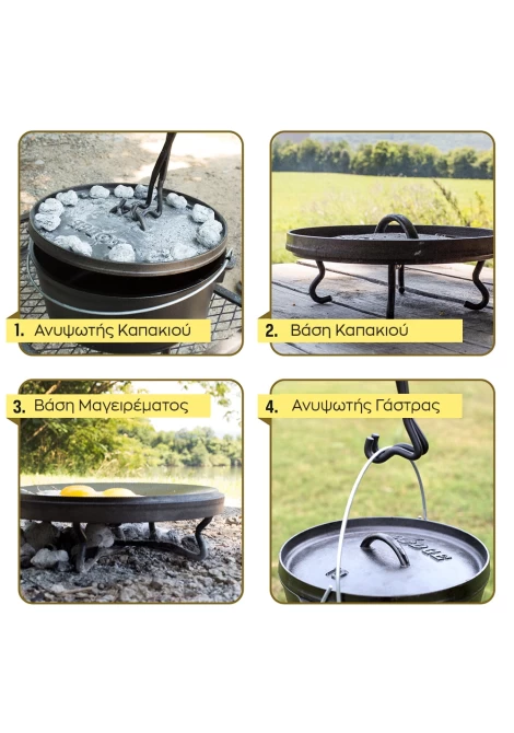 Το Lodge 4-in-1 είναι το απόλυτο εργαλείο για μαγείρεμα στο camping. Προστατεύει τα χέρια σας από τη θερμότητα, κρατά τα μαγειρικά σκεύη σε απόσταση από το έδαφος και μεγιστοποιεί την περιοχή μαγειρέματος. Κατασκευασμένο από ανθεκτικό υλικό πάχους 9 χιλιοστών και ανθεκτικό στις υψηλές θερμοκρασίες φινίρισμα. Χρησιμοποιήστε το ως βάση μαγειρέματος, ανυψωτικό καπακιού, βάση για καπάκι και ανυψωτικό κατσαρόλας.
