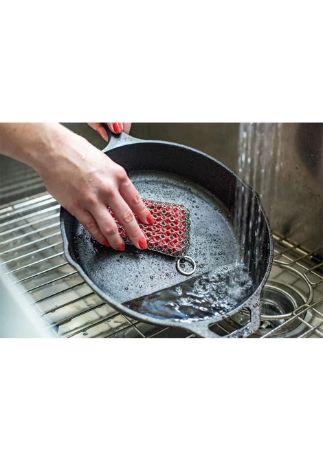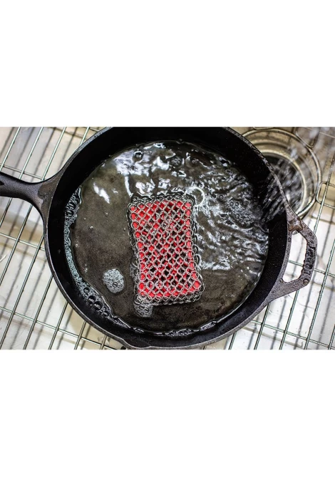 Το σφουγγάρι καθαρισμού της Lodge, αποτελείται από σιλικόνη με inox πλέγμα (από ανοξείδωτο ατσάλι). Ιδιαίτερα τραχύ & αποτελεσματικό, αφαιρεί με ευκολία τα υπολείμματα φαγητού, χωρίς να βλάπτει ή να επηρεάζει το seasoning του σκεύους.