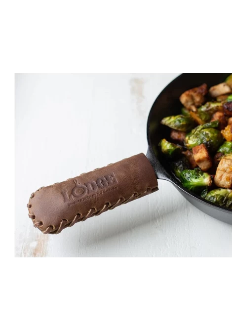 Δερμάτινη λαβή Lodge για να προστατεύετε τα χέρια από τη θερμότητα που αναπτύσσει το μαντέμι.
