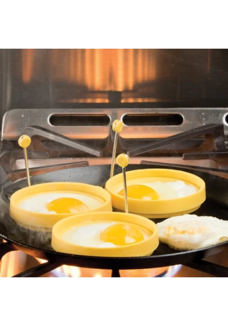 Η κίτρινη φόρμα σιλικόνης για αυγά της Lodge, είναι ένας απίστευτος τρόπος για να φτιάξετε ένα τέλειο τηγανητό αυγό ανά πάσα ώρα και στιγμή. Απλά τοποθετήστε τον δακτύλιο στο τηγάνι αφού ζεσταθεί το λάδι και στη συνέχεια προσθέστε το αυγό σας. Ένα τέλειο τηγανητό αυγό κάθε φορά. Η σιλικόνη υψηλής θερμότητας πλένεται με ασφάλεια στο πλυντήριο πιάτων.