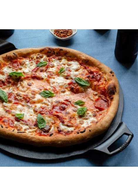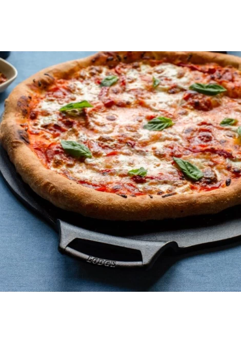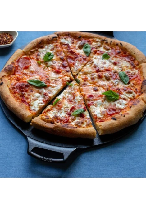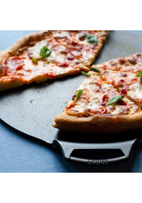 Για τραγανή κρούστα ποιότητας εστιατορίου, από την άνεση του σπιτιού σας, το μόνο που χρειάζεστε εκτός από τα υλικά, είναι η ολοκαίνουργια μαντεμένια βάση για pizza της Lodge. Με το φυσικό αντικολλητικό φινίρισμα, προσφέρει εξαιρετικά αποτελέσματα, ενώ είναι ιδιαίτερα ανθεκτική στη διάρκεια του χρόνου, χωρίς να λυγίζει ή να στρεβλώνει σε υψηλές θερμοκρασίες. Κατασκευασμένη στην Αμερική με σίδερο και λάδι και σχεδιασμένη για σας επιτρέπει να ψήνετε στα όρια, και να εκτοξεύσετε την γεύση της πίτσας σας. Παρέχει εξαιρετική κατανομή θερμότητας και συγκράτηση για σωστό, ομοιόμορφο & υγιεινό μαγείρεμα.