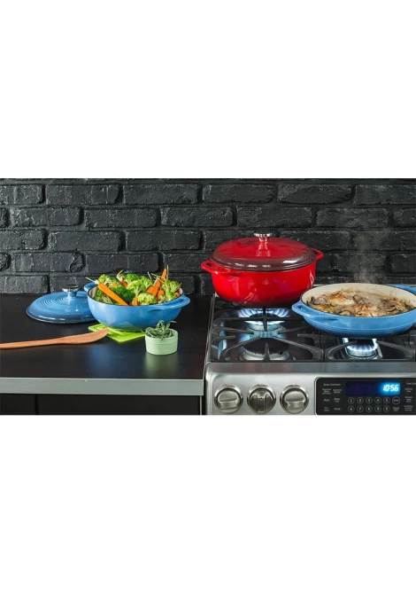 Lodge EC7D43 Red Μαντεμένια Κατσαρόλα / Γάστρα με επισμάλτωση πορσελάνης 7,38 lt