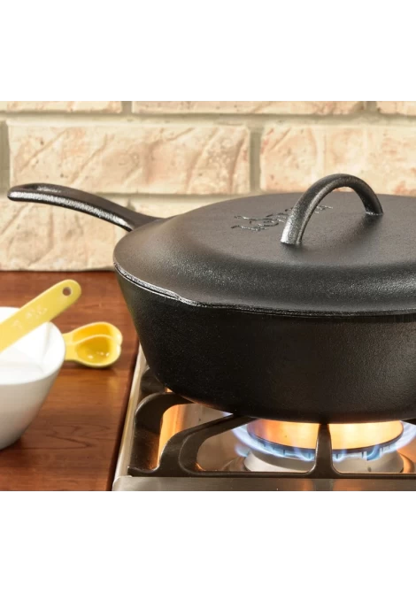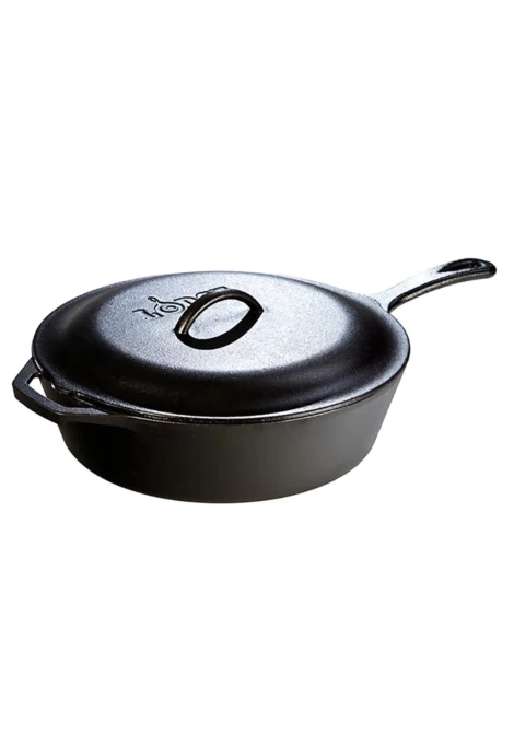 Με αρκετά εκατοστά επιπρόσθετου βάθους σε σχέση με τα παραδοσιακά μαντεμένια τηγάνια της, η Lodge έχει κατασκευάσει τοιδανικό βαθύ μαντεμένιο τηγάνι 4.73 lt, στο οποίο μπορείτε να μαγειρέψετε κυριολεκτικά τα πάντα: τηγανιτά, ψητά, βραστά ή ακόμη και φουρνιστά. Διαθέτει μια βοηθητική λαβή και μια ακόμα μακριά λαβή για μεγαλύτερη άνεση και εξαιρετικό έλεγχο ώστε να το μεταφέρετε με αυτοπεποίθηση και ασφάλεια οπουδήποτε στην κουζίνα σας. Φτιαγμένο από μαντέμι με 100% φυσική αντικολλητική επίστρωση (seasoned) και έτοιμο για χρήση, θα χαρίσει στο φαγητό σας όλη τη θερμότητα που χρειάζεταιγια να μαγειρευτεί ομοιόμορφα και να διατηρήσει τη διατροφική του αξία. Διαθέτει μαντεμένιο καπάκι για ακόμη περισσότερες δυνατότητες μαγειρέματος αλλά και ασφαλή χρήση στο φούρνο ή μέσα στο μπάρμπεκιου.
