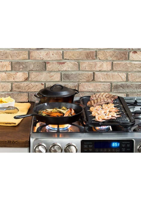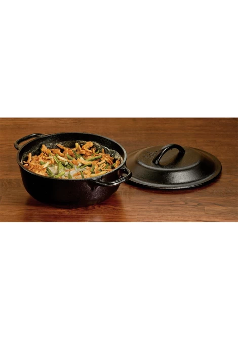 Χρησιμοποιήστε την μαντεμένια κατσαρόλα – γάστρα 1.89lt, της Lodge, για να μαγειρέψετε και στη συνέχεια να σερβίρετε απευθείας στο τραπέζι σούπες, όσπρια ή οποιοδήποτε αγαπημένο οικογενειακό φαγητό. Φτιαγμένο από μαντέμι με 100% φυσική επίστρωση (seasoned) με φυτικό λάδι και έτοιμο για χρήση. Με βασικό χαρακτηριστικό την εξαιρετική κατανομή θερμότητας και συγκράτηση, θα χαρίσει στο φαγητό σας σωστό, υγιεινό και ομοιόμορφο μαγείρεμα διατηρώντας όλη τη διατροφική του αξία. Με ειδικό σχεδιασμό στο εσωτερικό του καπακιού για ανακύκλωση της υγρασίας κατά τη διάρκεια του μαγειρέματος. Με δυο βοηθητικές λαβές, για περισσότερη άνεση και ακρίβεια κατά τη μεταφορά.