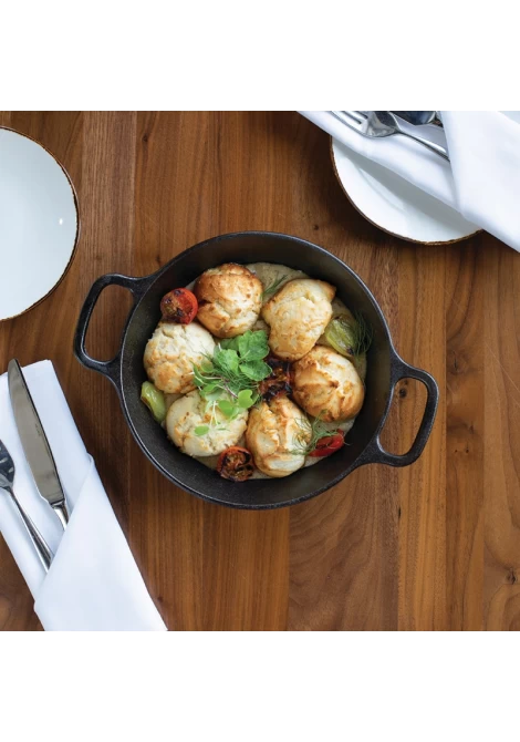 The 8 Inch Round Seasoned Cast Iron Pan is a great option for small meals or side dishes.
