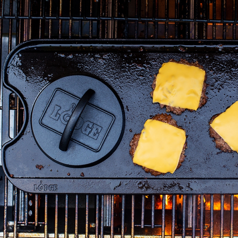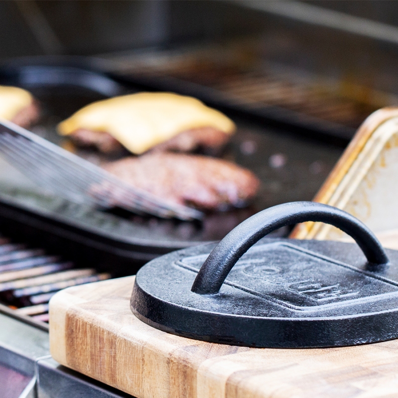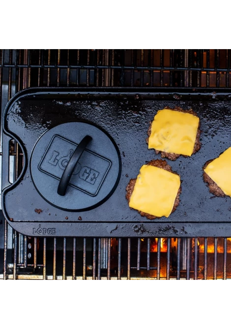 Δημιουργήστε το ιδανικό μπιφτέκι για το burger σας, με την μαντεμένια πρέσα για burger 16 εκ. της Lodge! Φτιαγμένη στην Αμερική από μαντέμι με 100% φυσική επίστρωση (seasoned) και έτοιμη για να σας βοηθήσει να δημιουργήσετε γευστικές στιγμές.