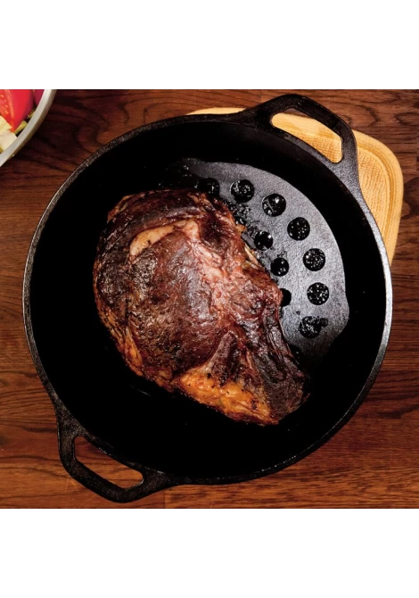 Η μαντεμένια βάση | σχάρα (L8DOT3), είναι ένα εξαιρετικό εργαλείο πολλαπλών χρήσεων της Lodge , ιδανικό για κάθε μάγειρα που του αρέσει το αργό ψήσιμο και το να έχει την ευελιξία να ψήνει στην κατσαρόλα. Τοποθετείτε στον πάτο της μαντεμένιας κατσαρόλας ή του μαντεμένιου τηγανιού. Διάτρητο για να επιτρέπει στα λίπη να απομακρύνονται από το φαγητό κατά το ψήσιμο. Εναλλακτικά μπορεί να χρησιμοποιηθεί και ως προστατευτική βάση επιφανειών από τη θερμότητα. Χαρίστε στο φαγητό σας σωστό, υγιεινό και ομοιόμορφο μαγείρεμα διατηρώντας όλη τη διατροφική του αξία. Φτιαγμένο από μαντέμι με 100% φυσική επίστρωση (seasoned) με φυτικό λάδι και έτοιμο για χρήση.
