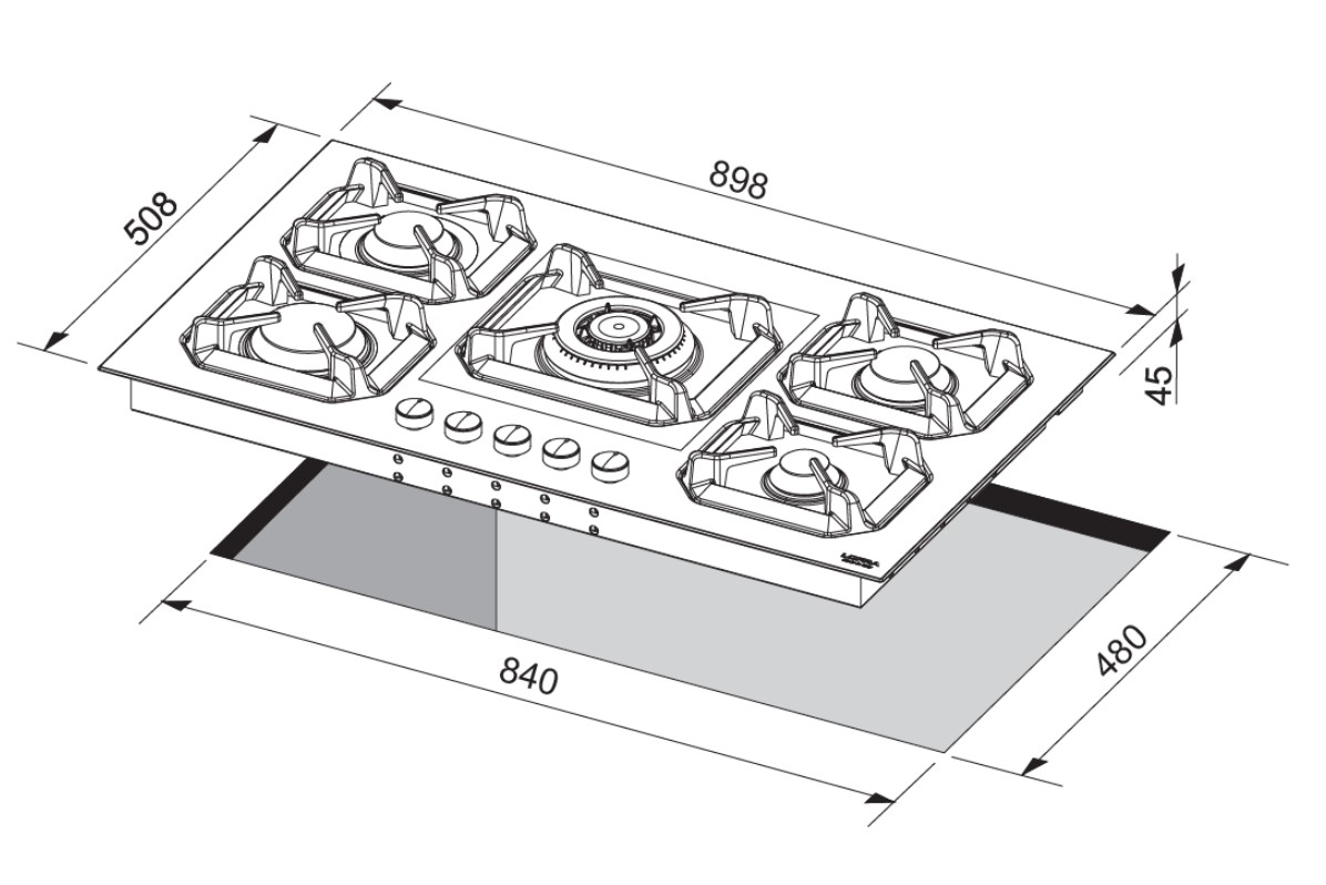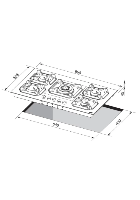 90εκ. – εστία αερίου με 5 καυστήρες