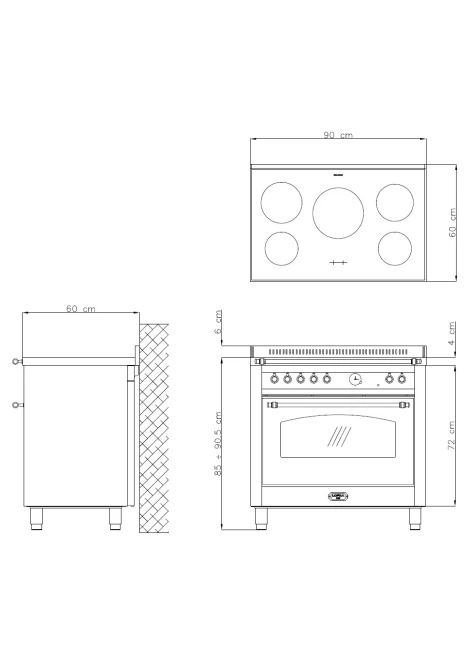 90x60εκ. - 5 επαγωγικές εστίες - φούρνος ηλεκτρικός