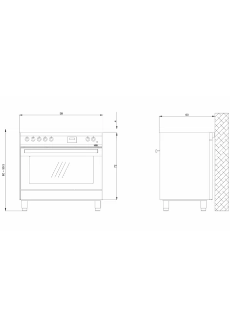 Διαστάσεις συσκευής (ΠxΥxΒ) 90,0 x 85,0-90,5 x 60,0 εκ.
