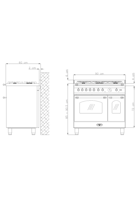- Διαστάσεις συσκευής (ΠxΥxΒ) 90,0 x 85,0-90,5 x 60,0 εκ.