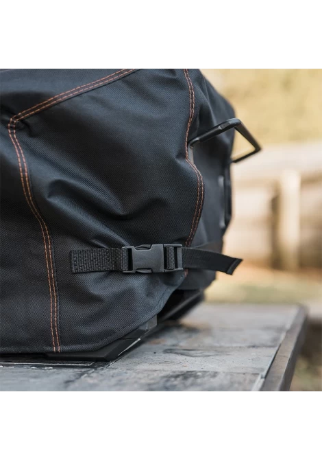 Επιπλέον, το κάλυμμα διαθέτει εσωτερική επένδυση από PVC, η οποία προσφέρει αυξημένη ανθεκτικότητα, αποτρέποντας το σκίσιμο κατά την αφαίρεση ή την τοποθέτησή του στην ψησταριά. Οι ρυθμιζόμενοι ιμάντες διευκολύνουν την εφαρμογή του κρατώντας το σταθερό, ακόμα και στις πιο δύσκολες καιρικές συνθήκες.