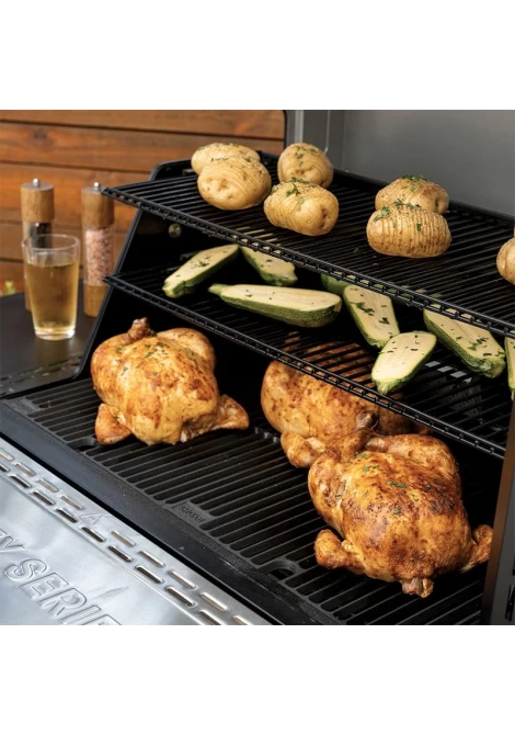 Διαθέτει δύο ράφια συντήρησης Warming Rack για να διατηρείτε τα φαγητά σας ζεστά πριν το σερβίρισμα! Ακόμη μπορείτε να το χρησιμοποιήσετε για να δώσετε στα πιάτα σας μοναδικό καπνιστό άρωμα! Με την πορσελάνινη επίστρωση, τα warming racks εξασφαλίζουν αυξημένη αντοχή στη θερμότητα και ευκολία στον καθαρισμό.