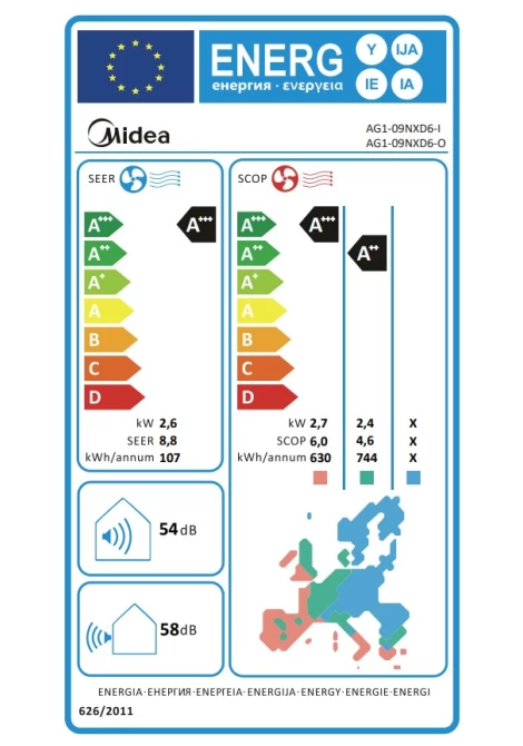 Η ενεργειακή κλάση των κλιματιστικών Midea σε όλες τις ζώνες, απόρροια των πολύ υψηλών εποχιακών συντελεστών απόδοσης (SEER & SCOP), μειώνει αισθητά την κατανάλωση ρεύματος, συμβάλλοντας περεταίρω στη μείωση των εκπομπών ρύπων στην ατμόσφαιρα και εξασφαλίζοντας ταυτόχρονα τη μέγιστη απόδοση του κλιματιστικού.