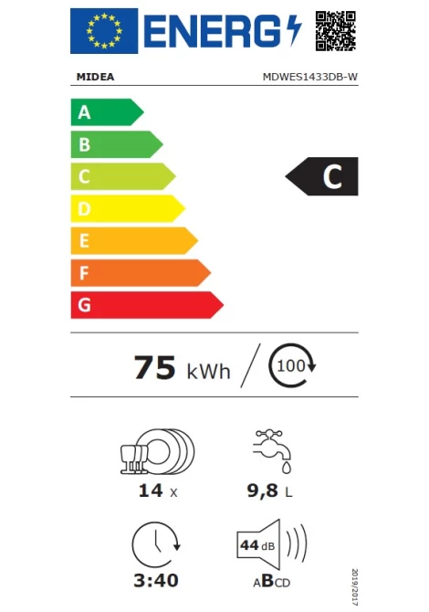Midea MDWES1433DB-W Ημιεντοιχιζόμενο Πλυντήριο Πιάτων 60cm