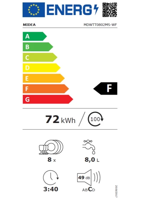 Midea MDWTT0802MS-WF Πλυντήριο Πιάτων Άνω πάγκου