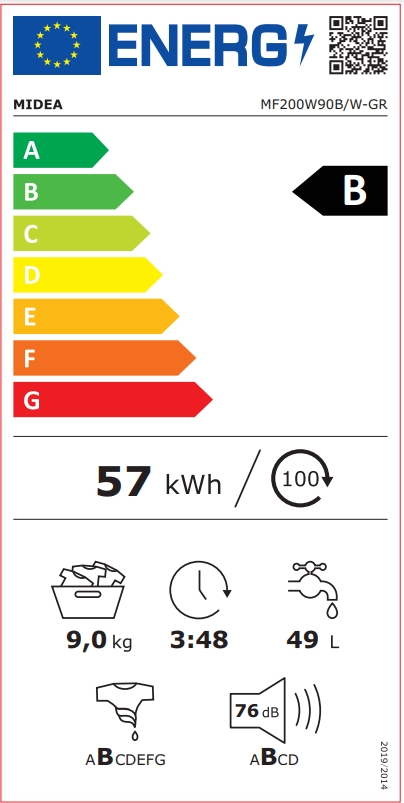 Midea MF200W90WB/T-GR Πλυντήριο Ρούχων