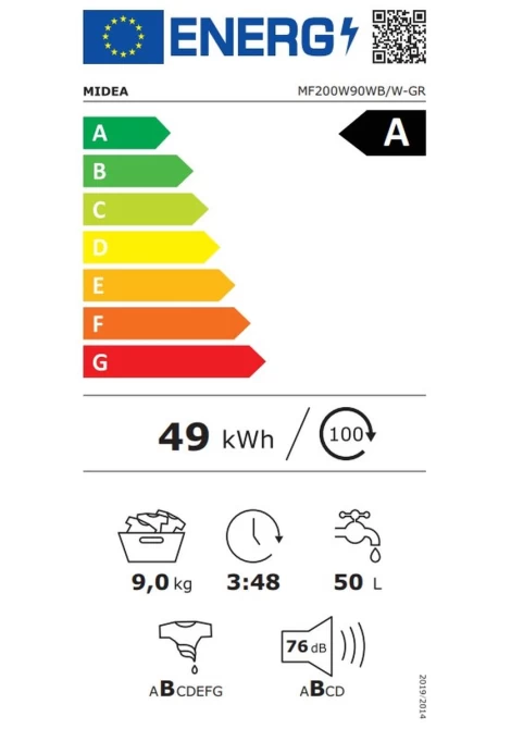 Midea MF200W90WB/W-GR Πλυντήριο Ρούχων