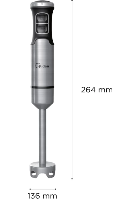 Ραβδομπλέντερ MJ-BH1001W, της εταιρείας Midea, με ισχύ 1000 Watt. Με το ραβδομπλέντερ θα μπορέσετε να πολτοποιήσετε τρόφιμα για παιδικές τροφές, να ομογενοποιήσετε σάλτσες, να φτιάξετε σπιτική μαγιονέζα, να δημιουργήσετε smoothies από οποιοδήποτε φρούτο επιθυμείτε ή ακόμα και να ετοιμάσετε σούπες. Είναι πολύ πρακτικό, εύχρηστο και καταλαμβάνει λιγότερο χώρο, σε σχέση με ένα επιτραπέζιο μπλέντερ. Μεγάλο του πλεονέκτημα αποτελεί το γεγονός ότι μπορείτε να επεξεργάζεστε τα υλικά σας μέσα σε οποιοδήποτε σκεύος, χωρίς να χρειάζεται να τα μεταφέρετε και να συσσωρεύονται στην κουζίνα σας διαρκώς άπλυτα σκεύη. Κατά τη διάρκεια του μαγειρέματος καλό θα είναι να έχετε πάντα την κεφαλή βυθισμένη μέσα στα τρόφιμα που επεξεργάζεστε, ώστε να αποφεύγονται ανεπιθύμητα πιτσιλίσματα αλλά και τυχόν εγκαύματα, στην περίπτωση που το τρόφιμο που επεξεργάζεστε είναι ακόμα καυτό.