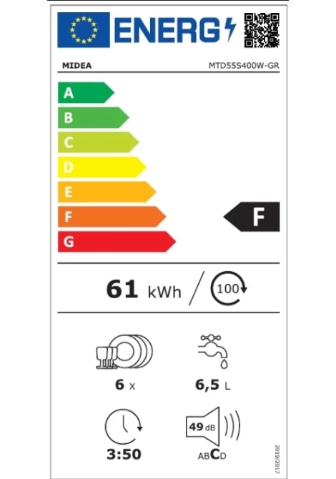 Midea MTD55S400W-GR Επιτραπέζιο Πλυντήριο Πιάτων