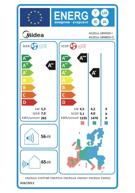 Ενεργειακή Κλάση: Ψύξης / Θέρμανσης A++ / A+++