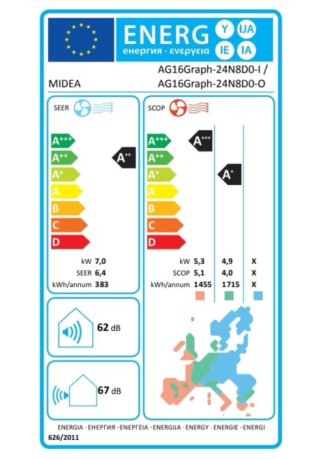Ενεργειακή Κλάση: Ψύξης / Θέρμανσης A++/ A+++