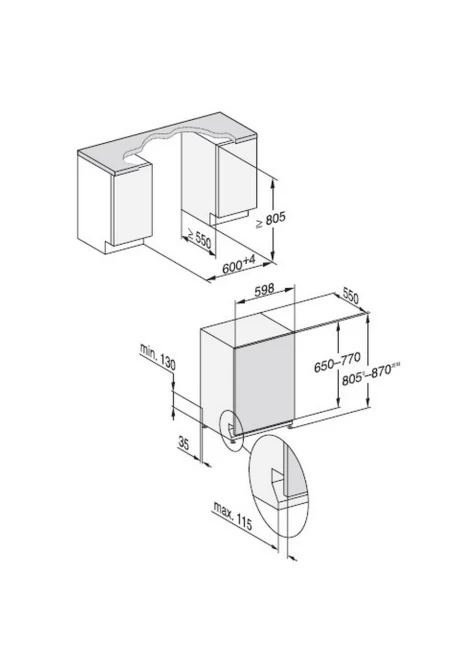 Ελάχιστο ύψος ανοίγματος εντοιχισμού σε mm: 805