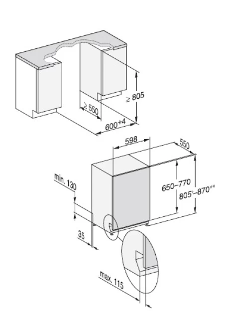 Ελάχιστο ύψος ανοίγματος εντοιχισμού σε mm: 805