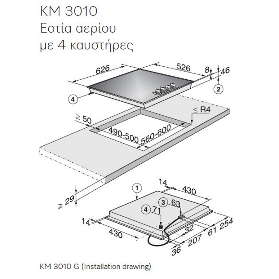 Miele KM 3010 Silver Εστία Αερίου (9228920)