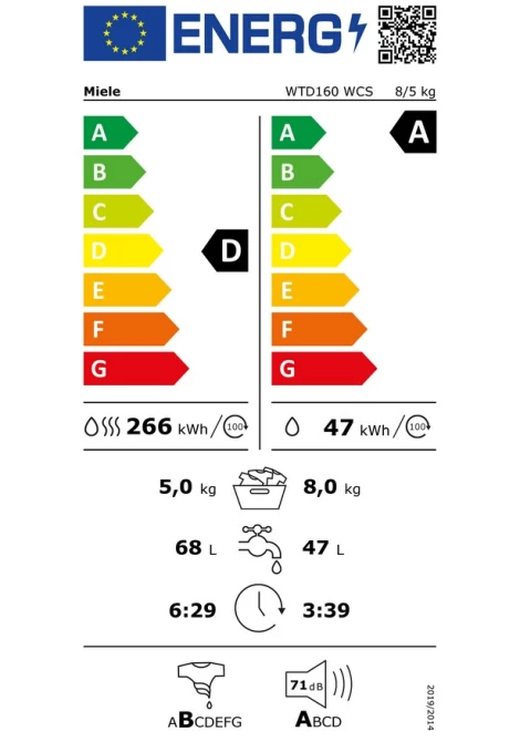 Miele WTD160 WCS 8/5 kg Πλυντήριο-Στεγνωτήριο