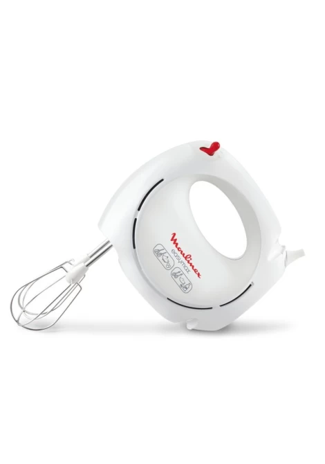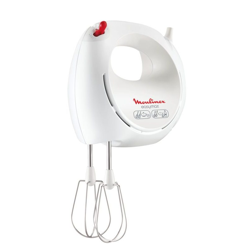 Μίξερ χειρός Moulinex Easymax. Πλέον μπορείτε πανεύκολα να φτιάχνετε μαρέγκα, να χτυπάτε σαντιγύ, και να ανακατεύετε μείγματα για κέικ, χάρη στο μίξερ χειρός Easymax. Είναι εργονομικό και πρακτικό στη χρήση, είτε για να επιλέξετε ταχύτητα είτε για να αφαιρέσετε τους αναδευτήρες, με ενιαίο διακόπτη χειρισμού. Χάρη στην ισχύ 200W και στις 5 ταχύτητες, μπορείτε πανεύκολα να χτυπάτε ασπράδια και να φτιάχνετε σαντιγί με τα 2 σετ αναδευτήρων (πλαστικά και ανοξείδωτα) που συμπεριλαμβάνονται. Χάρη στο μικρό του μέγεθος είναι ιδανικό όταν θέλετε να ετοιμάσετε λαχταριστά γλυκά και αποθηκεύεται πολύ εύκολα στην κουζίνα σας.
